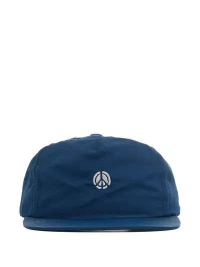 navy blue embroidered logo flat peak adjustable strap metal buckle tonal stitching