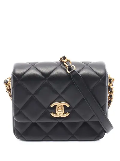quilted lambskin leather body leather woven chain link strap with flat leather shoulder guard flap with CC twist-lock closure exterior back slip pocket interior slip pocket black Serial Number: L51HG913 This item has no inclusions. Condition: EXCELLENT. This previously owned item is in near-perfect condition with no signs of damage or use. Due to the exclusivity of this item and its limited availability, processing and delivery might take longer than usual. Please refer to the photos on this product page for a detailed view of the item, including any damages declared.