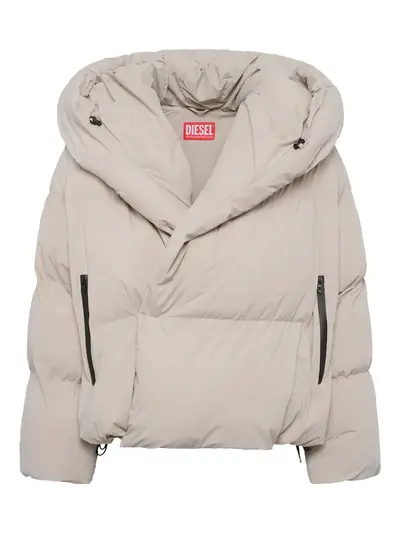 light beige drawstring hood zip fastening front zip pockets long sleeves