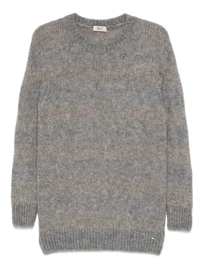 grey horizontal stripes round neck long sleeves ribbed hem and cuffs