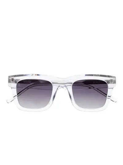 white square frame gradient lenses nose pads curved arms logo detail These glasses come with a protective case.