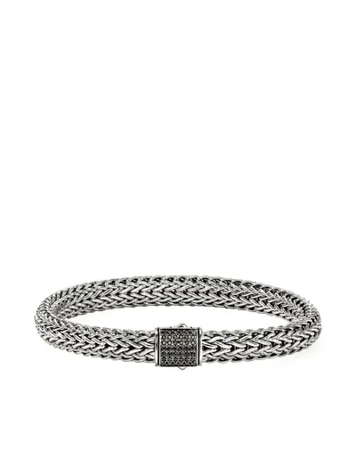 silver-tone sterling silver pavé-set round-cut black sapphire woven design polished finish buckle fastening Normal everyday use and external agents may reduce the lustre of gemstones and gold surfaces. To maintain, use specific, non-abrasive products specially meant for cleaning jewellery.