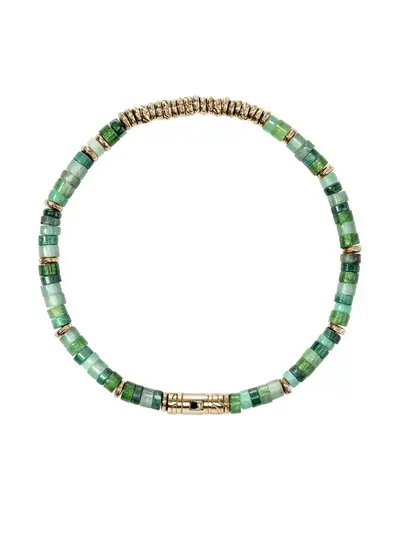 yellow gold-tone 14K yellow gold malachite beads cylinder beads clasp fastening Normal everyday use and external agents may reduce the lustre of gemstones and gold surfaces. To maintain, use specific, non-abrasive products specially meant for cleaning jewellery.