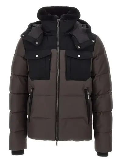 brown removable hood chest pockets side pockets hip pockets art print lining