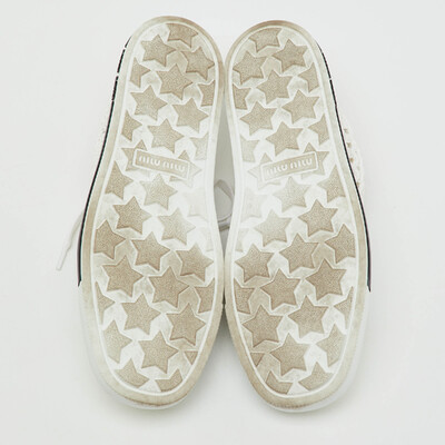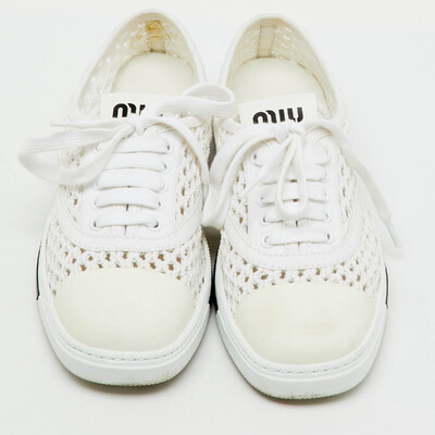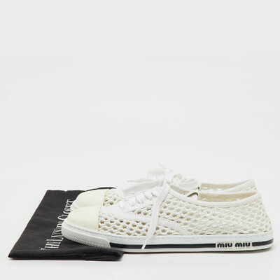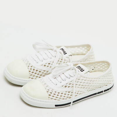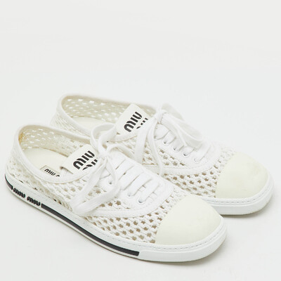 Miu Miu White Rope Fabric Low Top Sneakers Size 38.5 1224359 (белый, lpn31069783)