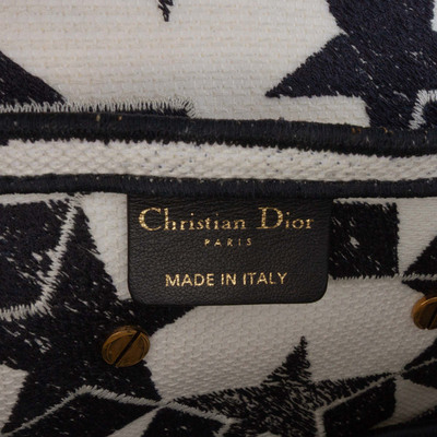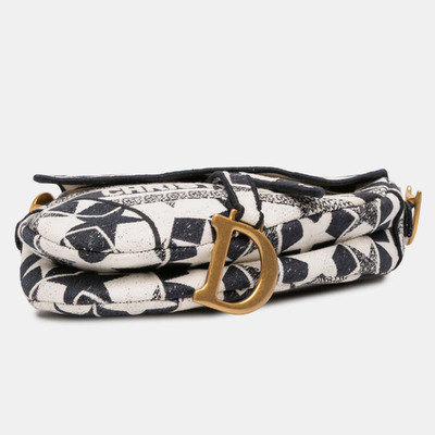 This iconic Dior Saddle Bag is reimagined in Black and White Embroidered Canvas, featuring a celestial pattern of striking star motifs. Showcasing exceptional artisanal detail, this piece is a bold, modern accessory for the avant garde collector.