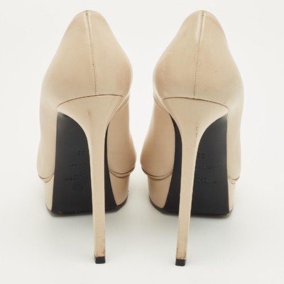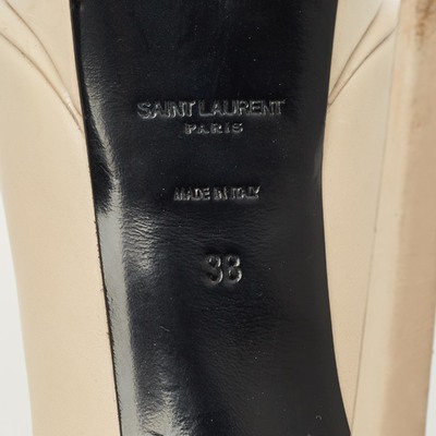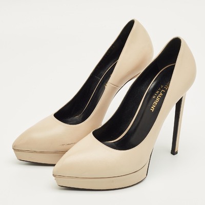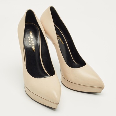 Saint Laurent’s Janis pumps bring sculpted height and clean lines together in beige leather. The pointed toes sharpen the silhouette, while the platform and slim heel stretch the profile to a striking finish. Confident, minimal, and made to lengthen the stance with every step.