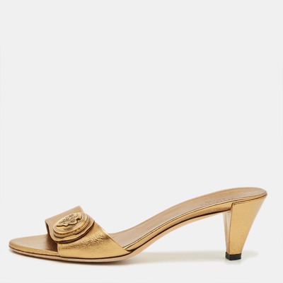 Gucci Gold Leather Logo Embellish Slide Sandals Size 36 1231689 - 1