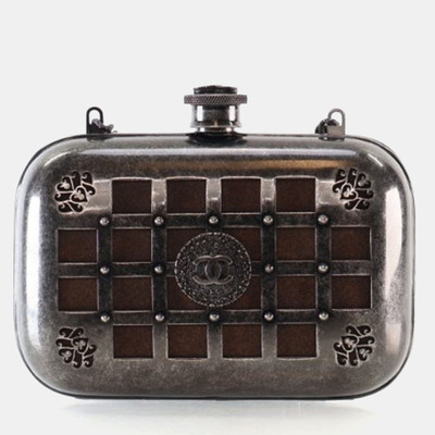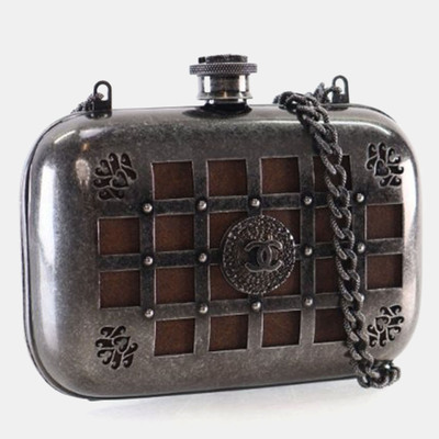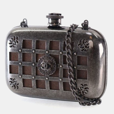 The Chanel Mini Grey Gunmetal Grid Cage Clutch showcases a daring blend of modern artistry and timeless allure. Crafted in metallic grey gunmetal leather, its striking geometric grid design catches light beautifully, creating an avant garde edge. Compact yet captivating, this piece transitions effortlessly from elegant soirées to contemporary events. A rare collector’s treasure that embodies Chanel’s innovative spirit and impeccable craftsmanship.