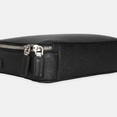 Sleek and versatile, the Prada Medium Brique Crossbody Bag in black Saffiano leather combines understated elegance with everyday practicality. Its structured silhouette and refined finish make it a statement piece for modern, luxury ready wardrobes.