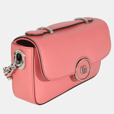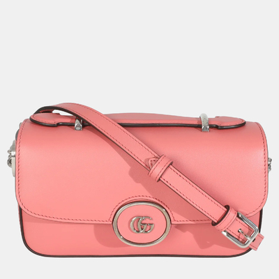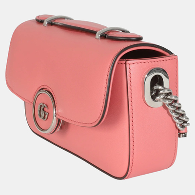 Gucci’s Petite GG Top Handle Bag in soft pink calfskin is the embodiment of feminine charm and modern refinement. Its understated silhouette, paired with subtle branding, makes it a versatile accessory, blending playful softness with a quiet sophistication that is unmistakably Gucci.