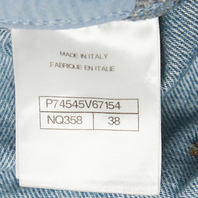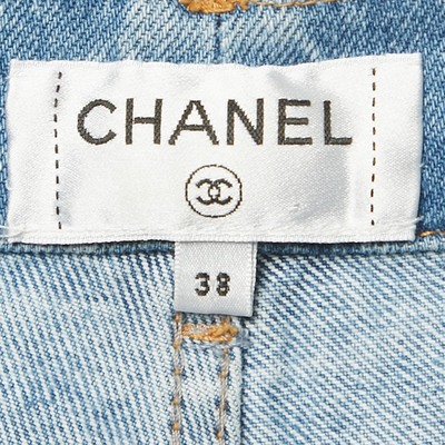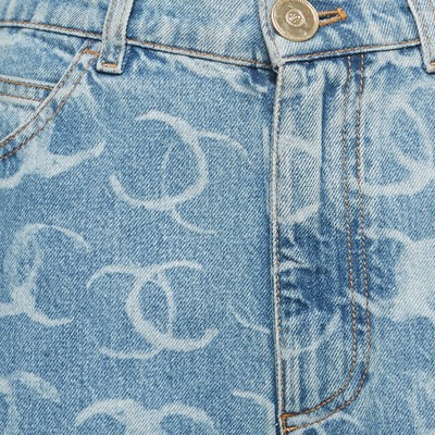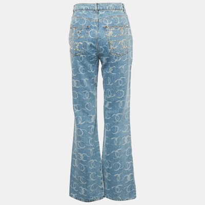 These preloved Chanel jeans are a grand update on everyday denim. Designed in a straight cut with a soft flare toward the hem, they feature an all over CC monogram washed into the blue cotton for a soft, tonal effect. A touch of sequin detail at the back pocket adds glamour.