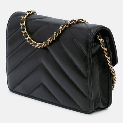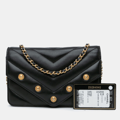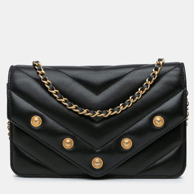 Elegantly compact, this wallet on chain fuses function with finesse. Supple lambskin is sculpted into sleek chevron quilting, offering a tactile rhythm that’s both modern and timeless. The button closure adds a subtle vintage nod, while its slender silhouette moves seamlessly from crossbody utility to clutch worthy sophistication.