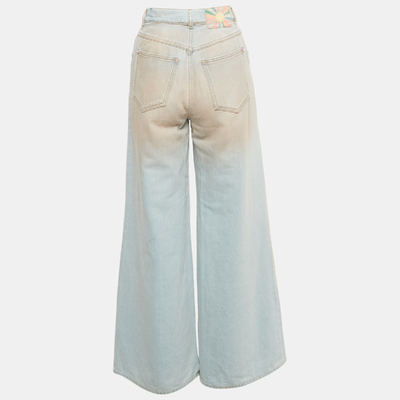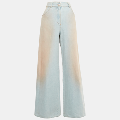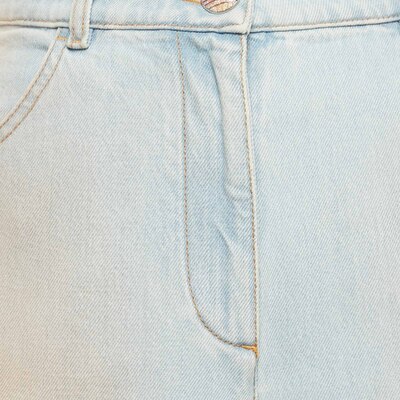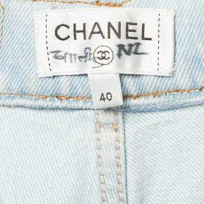 These Chanel flared jeans bring a soft twist to classic denim. The pale blue wash fades into warm beige tones, giving them an easy, sun worn feel. High at the waist and wide through the leg, they move with that confidence only Chanel pieces carry.