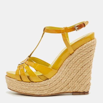 Dior Yellow Patent Leather CD T-Strap Espadrille Wedge Sandals Size 35.5 1229659 (жёлтый, lpn31070002)