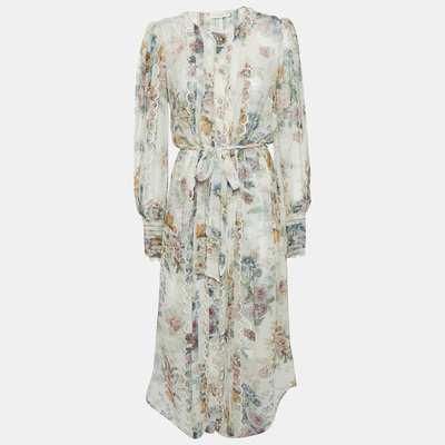 Zimmermann White Floral Print Crepe Scallop Detail Long Dress S 1158179 (белый, lpn31070004)