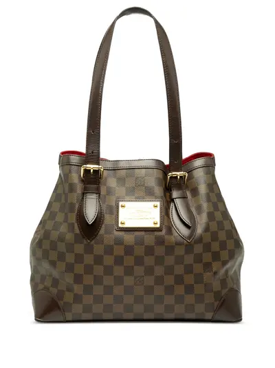damier ebene canvas body with leather trim flat leather handles open top interior zip and slip pockets brown Serial Number: CA0068 This item has no inclusions. Condition: GOOD. This previously owned and used item is in good condition with minimal signs of use. This may include fading of material or plating and scratches. Declared Damages: Embellishment Feature(s) Moderate Scratches. Please refer to the photos on this product page for a detailed view of the item, including any damages declared.
