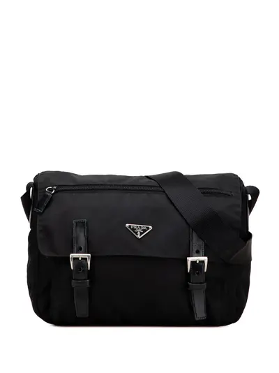 nylon body with leather trim adjustable flat strap front flap with buckle closures top zip closure exterior front zip pocket interior zip pockets black Inclusions: authenticity card. Condition: GOOD. This previously owned and used item is in good condition with minimal signs of use. This may include fading of material or plating and scratches. Declared Damages: Exterior Pocket Feature(s) Moderate Stains. Front Feature(s) Moderate Wear. Please refer to the photos on this product page for a detailed view of the item, including any damages declared.