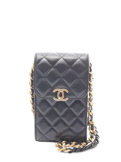 quilted lambskin body leather woven lacquered chain link strap front flap with magnetic snap closure interior slip pocket black Serial Number: 32063695 This item has no inclusions. Condition: GOOD. This previously owned and used item is in good condition with minimal signs of use. This may include fading of material or plating and scratches. Due to the exclusivity of this item and its limited availability, processing and delivery might take longer than usual. Declared Damages: Exterior Side Feature(s) Moderate Wear. Please refer to the photos on this product page for a detailed view of the item, including any damages declared.