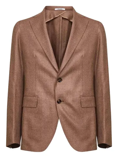 brown virgin wool-cashmere blend flap pockets button fastening long sleeve