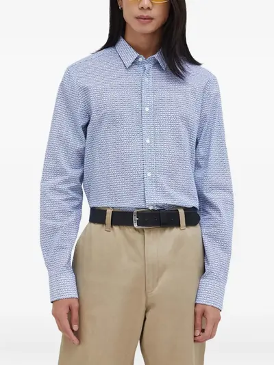 blue all-over logo print button fastening long sleeves buttoned cuffs