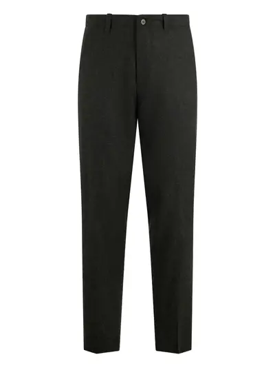 dark green belt loops button fastening rear welt pocket side seam pockets