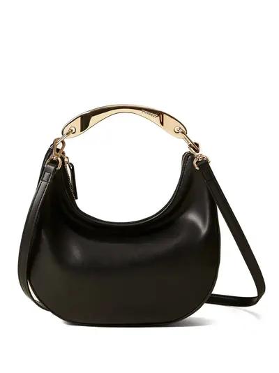 black metal top handle detachable shoulder strap zip fastening gold-tone hardware internal zip pocket