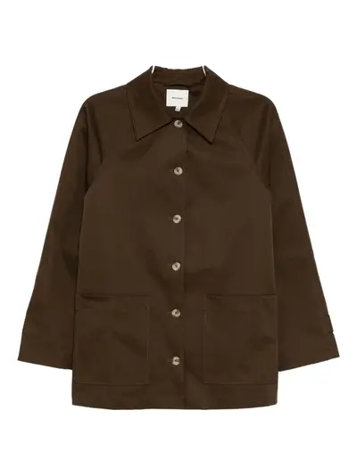 chocolate brown front button fastening two front patch pockets