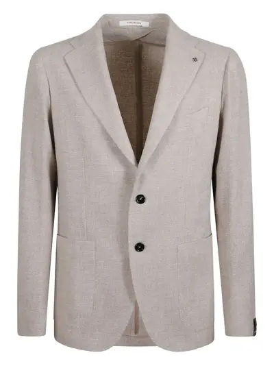 dove grey button fastening lapel pin welt pocket flap pockets long sleeves