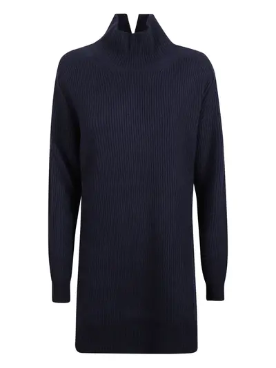 blue ribbed knit high neck long sleeves cut-out detail logo detail