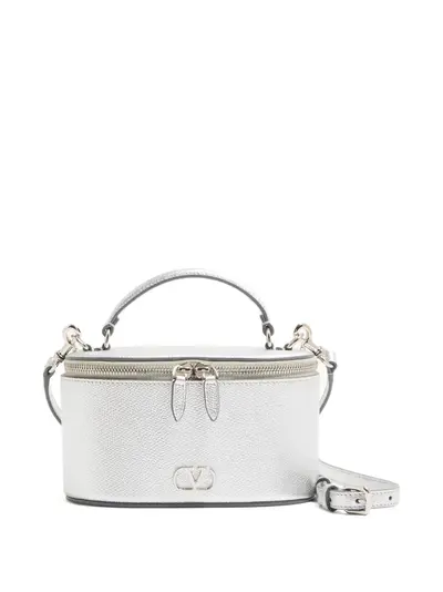 silver grained finish silver-tone VLogo Signature zip closure leather handle adjustable removable shoulder strap