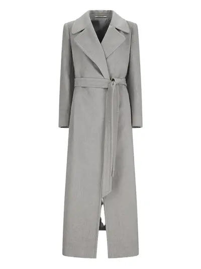 grey tie belt lapel collar long sleeves wrap design rear vent