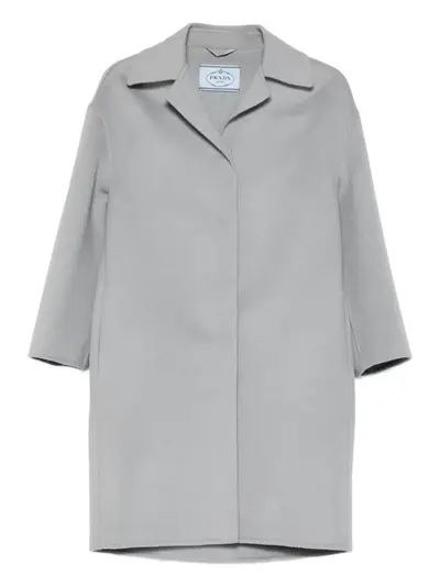 grey concealed front fastening long sleeves notched lapels straight hem front welt pockets