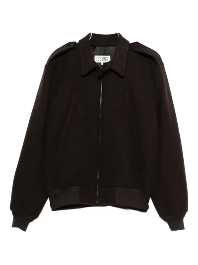brown point collar zip fastening ribbed hem ribbed cuffs