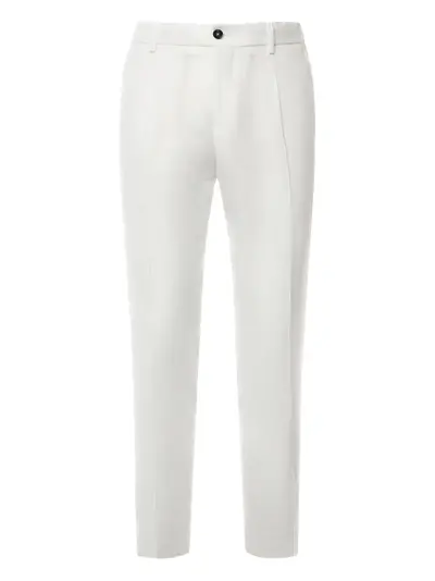 white button fastening belt loops elasticated rear waistband side seam pockets welt pockets
