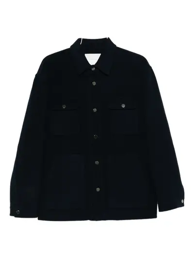 midnight blue point collar front button fastening long sleeves buttoned cuffs chest pockets front pockets