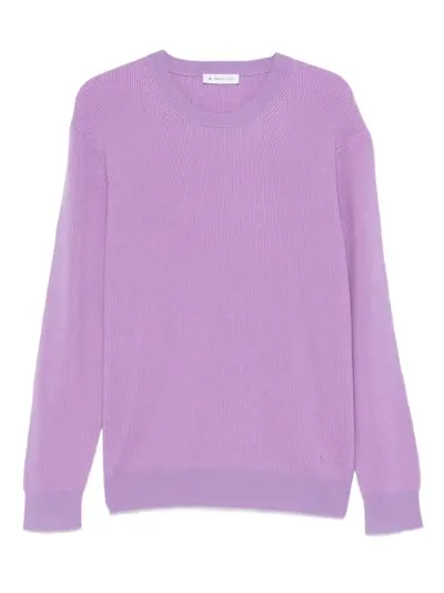 lavender purple crew neck ribbed knit long sleeves straight hem