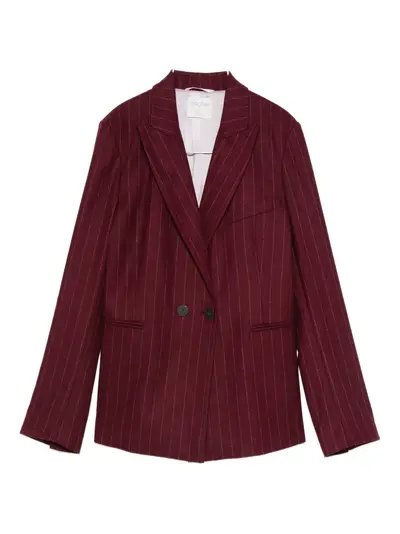 red pinstripe pattern double-breasted button fastening peak lapels long sleeve