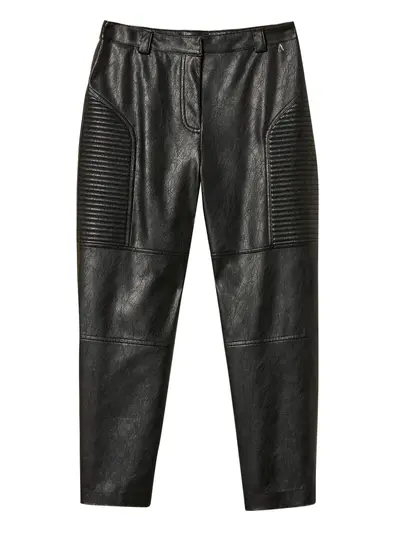 black faux leather effect ribbed panels belt loops zip and hook fastening