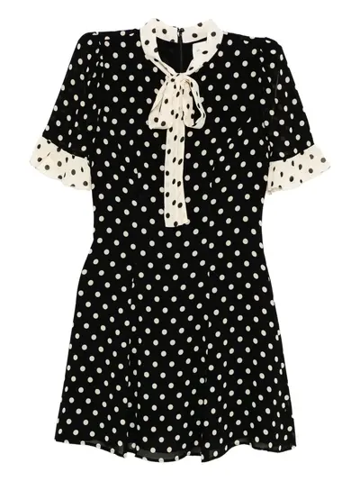 black concealed rear hook and zip fastening front tie fastening polka dot print