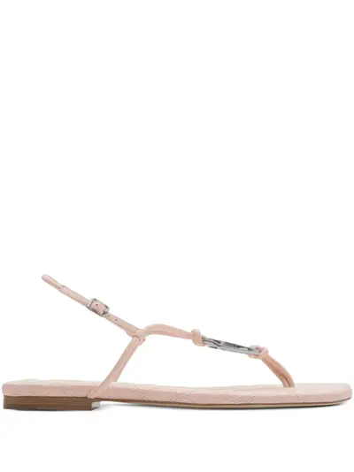 blush pink buckle-fastening slingback strap thong style cushioned insole logo-engraved silver-tone hardware