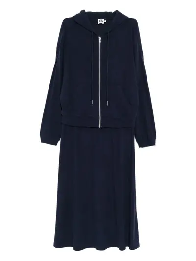 navy blue front zip fastening elasticated waistband drawstring hood two front pouch pockets