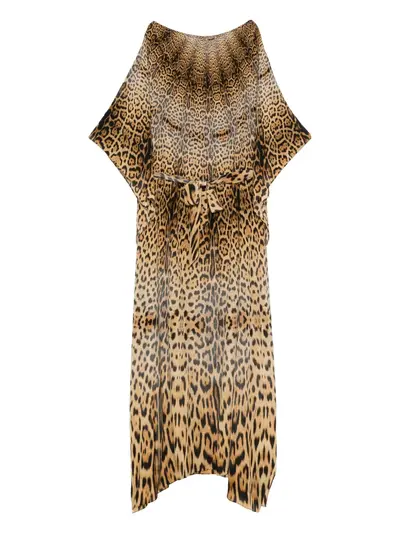 brown leopard print tie detail boat neck short sleeves