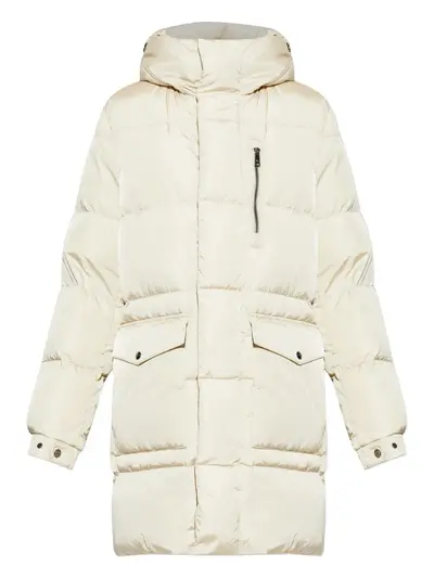 cream hooded concealed front zip fastening press-stud fastening pockets long sleeves press-stud cuffs