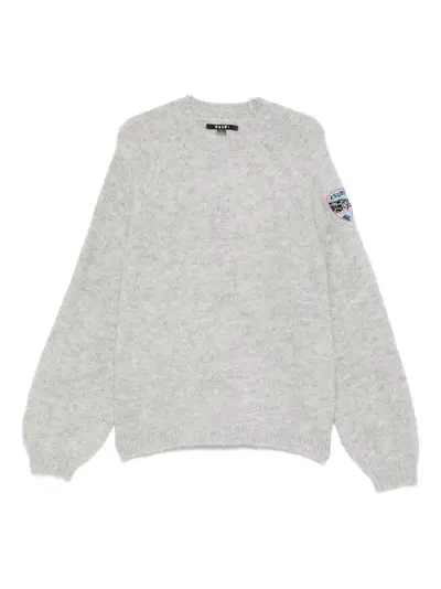 grey alpaca wool blend round neck long sleeves patch detail ribbed hem