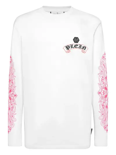 white crew neck long sleeves embroidered logo at the chest straight hem