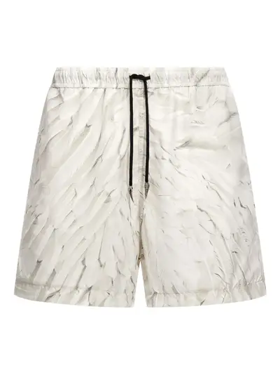 white feathers print drawstring fastening logo patch side seam pockets Be mindful to try on swimwear over your own garments.