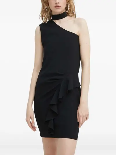 black one-shoulder design choker detail ruffled trim sleeveless concealed zip fastening