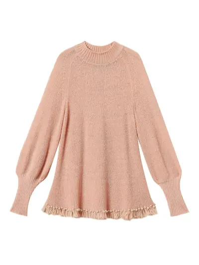 light pink fringes pearl embellishment turtleneck long sleeves ribbed cuffs