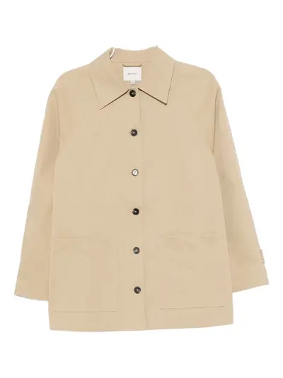taupe front button fastening two side patch pockets belted cuffs long sleeves